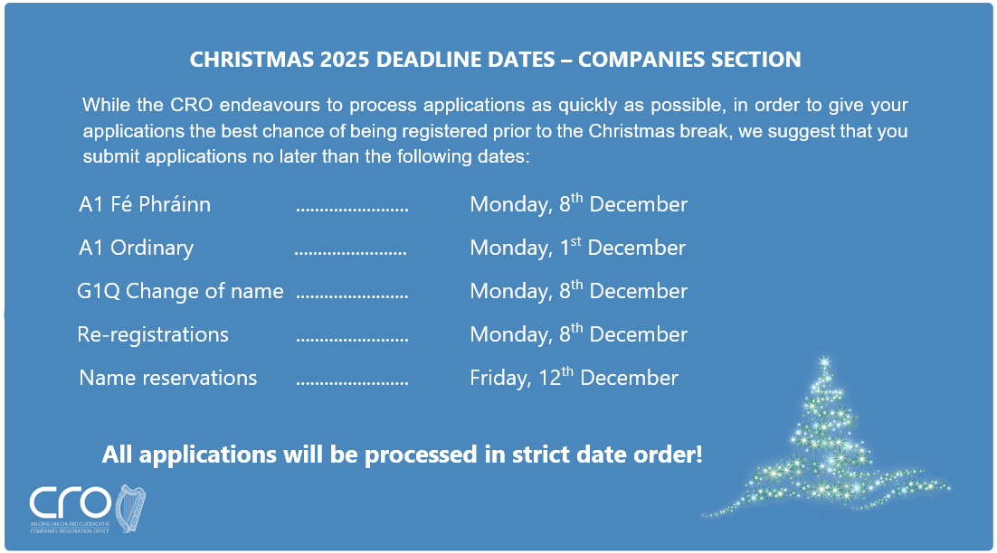 Companies Registration Office, Bloom House, Gloucester Place Lower, Dublin 1.