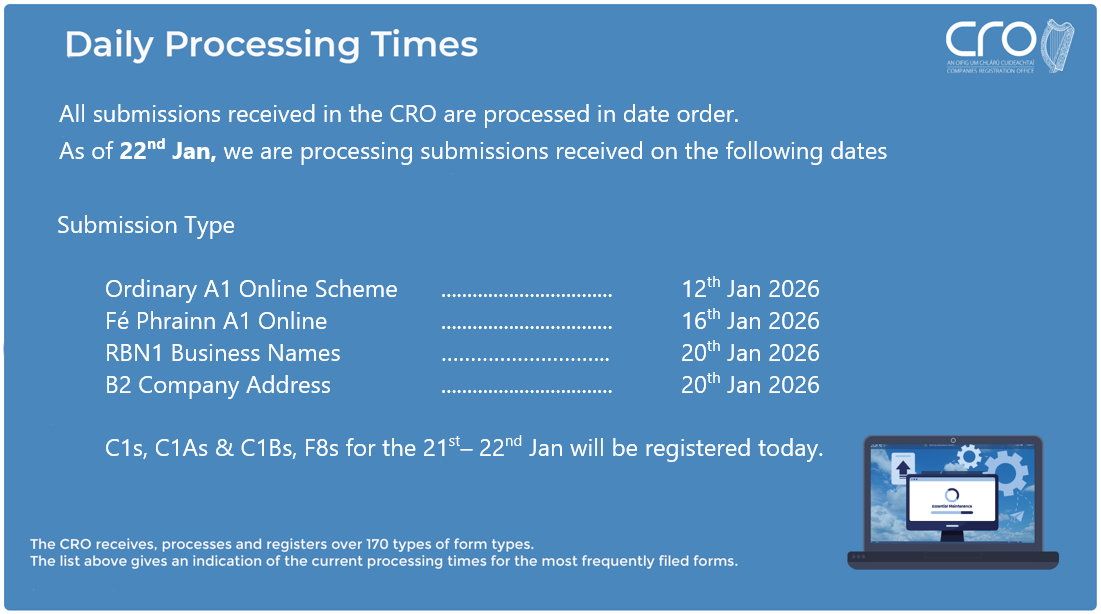 All submissions received in the CRO are processed in date order.