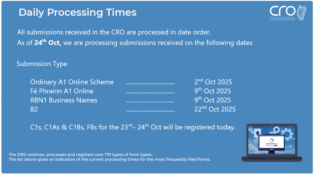 Companies Registration Office, Bloom House, Gloucester Place Lower, Dublin 1.