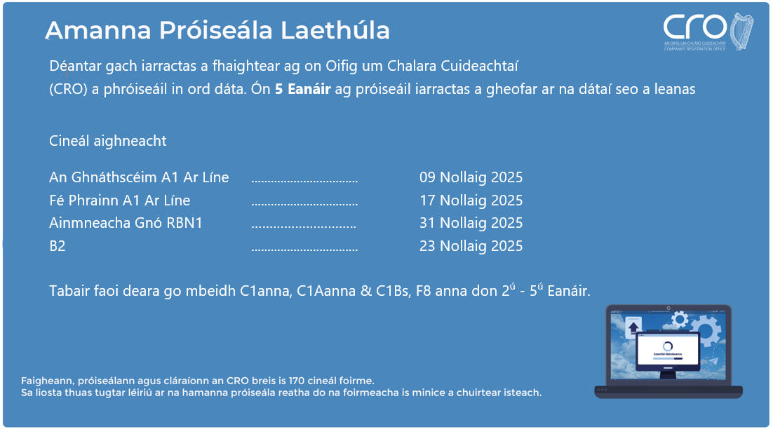 Déantar gach aighneacht a fhaightear sa CRO a phróiseáil in ord dáta.