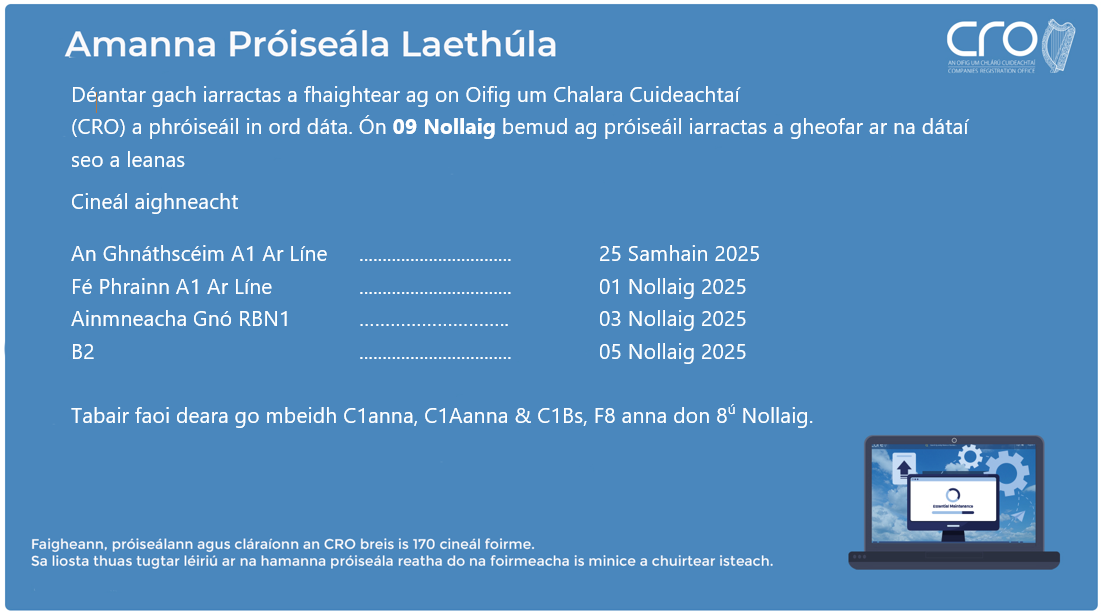 Oifig Chlárúcháin Cuideachtaí, Teach Bloom, Áit Gloucester Íochtarach, Baile Átha Cliath 1.
