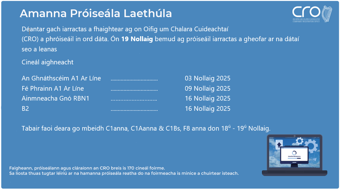 Déantar gach aighneacht a fhaightear sa CRO a phróiseáil in ord dáta.