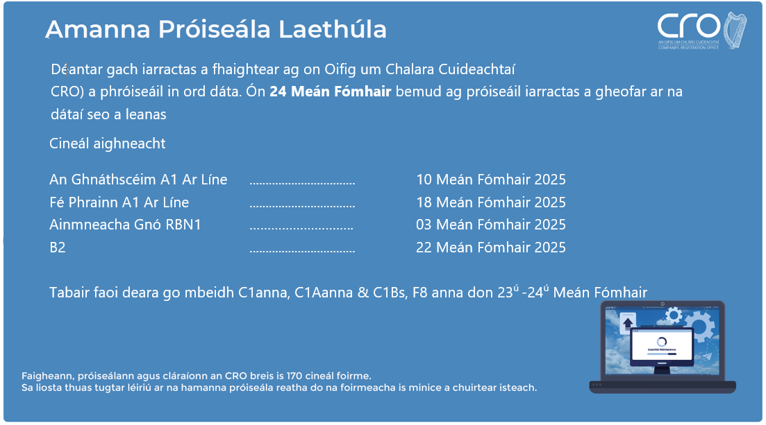 Oifig Chlárúcháin Cuideachtaí, Teach Bloom, Áit Gloucester Íochtarach, Baile Átha Cliath 1.